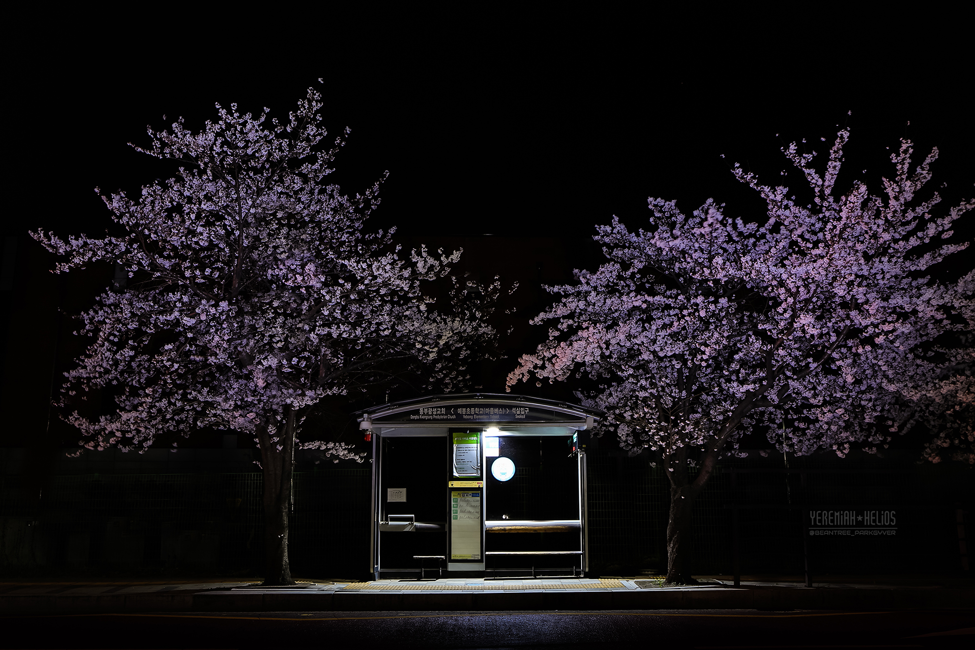 밤벚꽃 피어있는 정류장